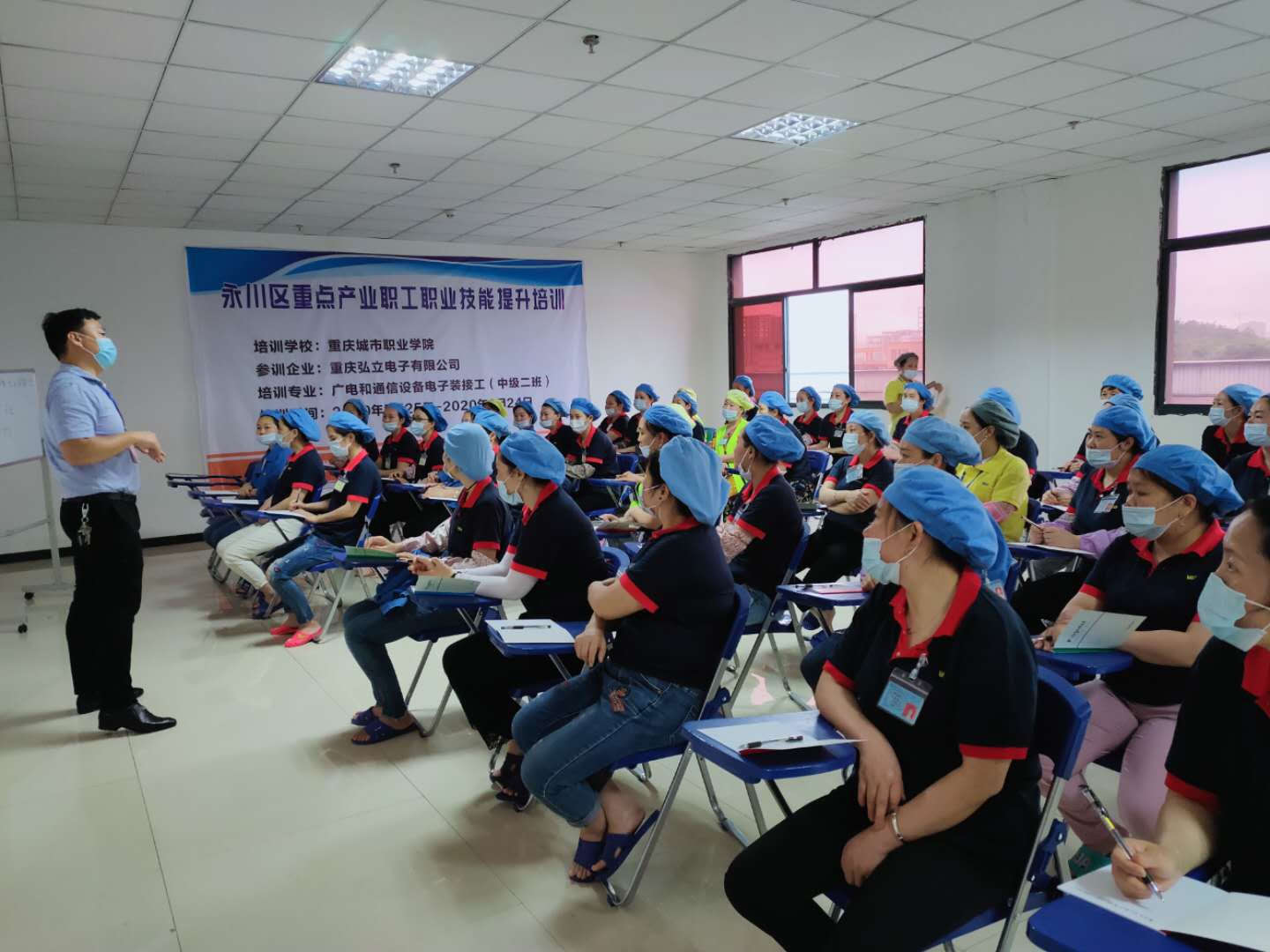 525日,公司在重庆弘立电子有限公司开设的永川区重点产业职工职业技能提升培训班正式开班。本次培训工种为广电和通信设备电子装接工(中级),培训人数150人,培训时长1个月。