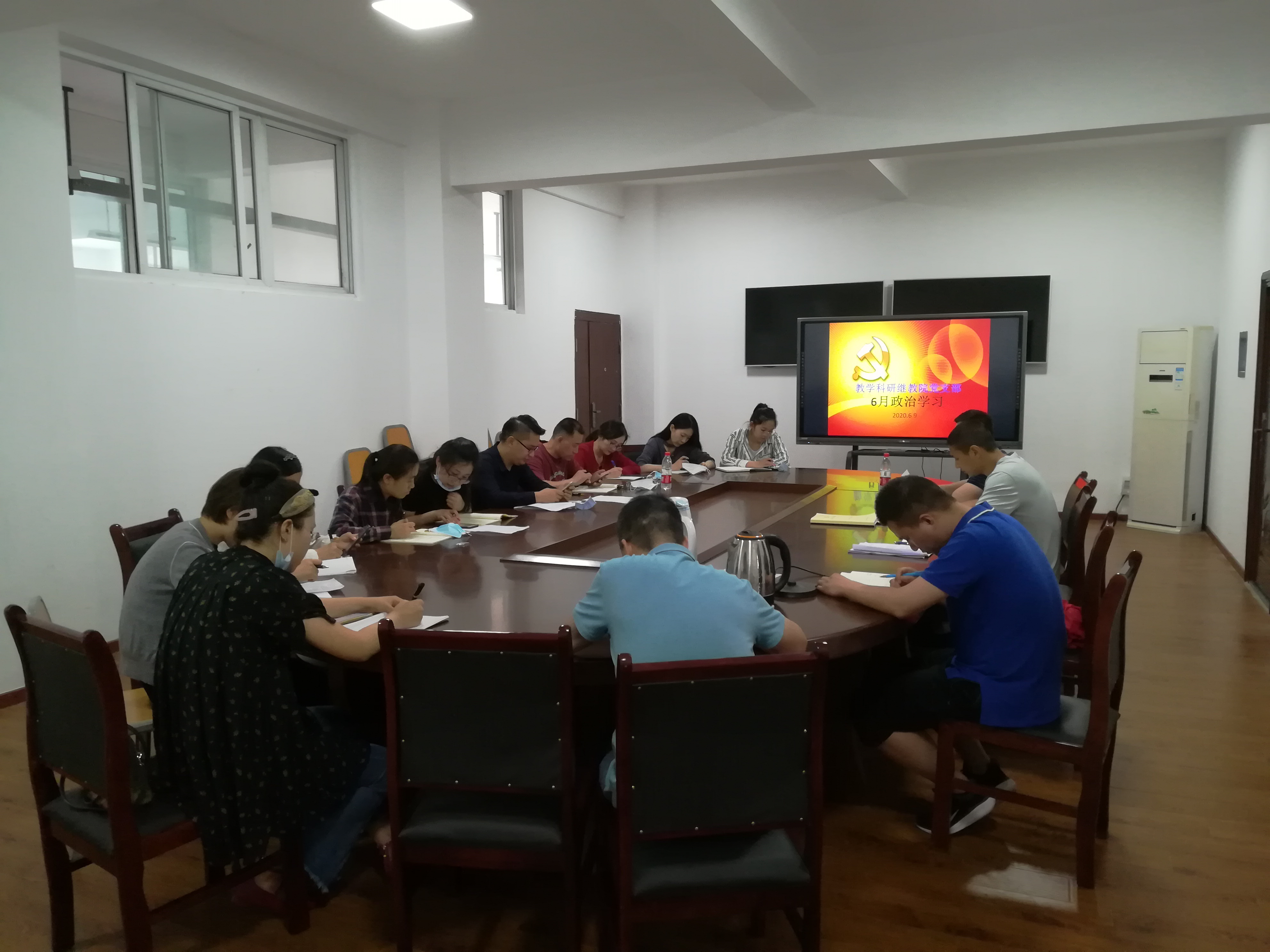 2020年6月9日下午3点,教学科研继教公司党支部在文华楼209会议室以 “学习两会精神,勇担教师使命”为主题组织开展6月政治学习活动。